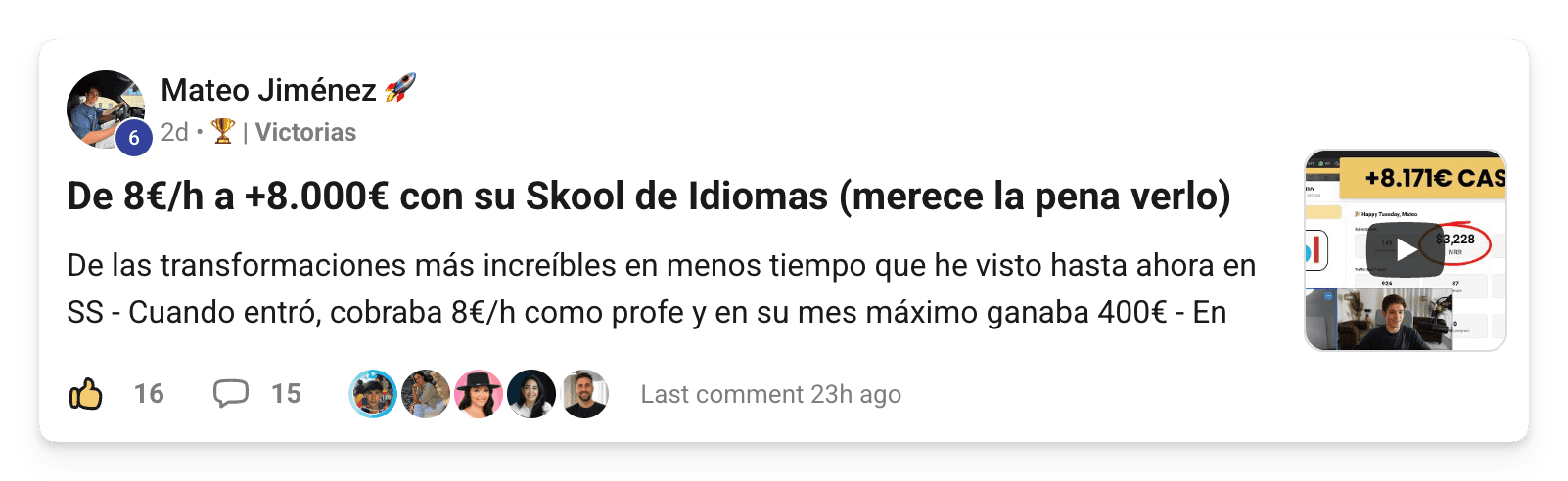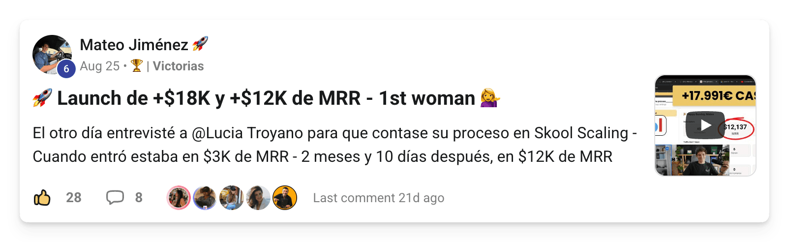 De 0 a +25.000€ y +11.300€ de MRR con su Skool en solo 30 días