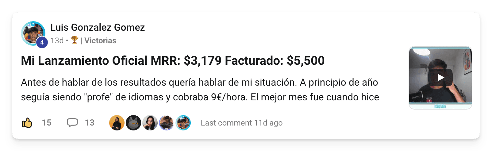 De 5K€ a +11K€ de MRR y 23.000€ con su Skool de IA