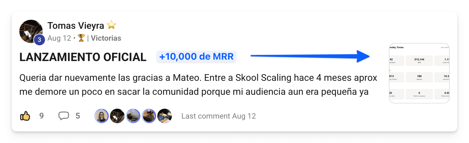 De 0 a +$10K y +$5K de MRR con su Comunidad de Skool en 54 días